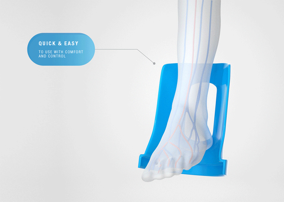 The EzyAs™ is a quick and easy compression stocking applicator and compression sock aid. It reduces the difficulty and pain when putting on upper and lower limb compression garments, stocking or socks especially if bending and reaching or getting the stocking over the foot is difficult.